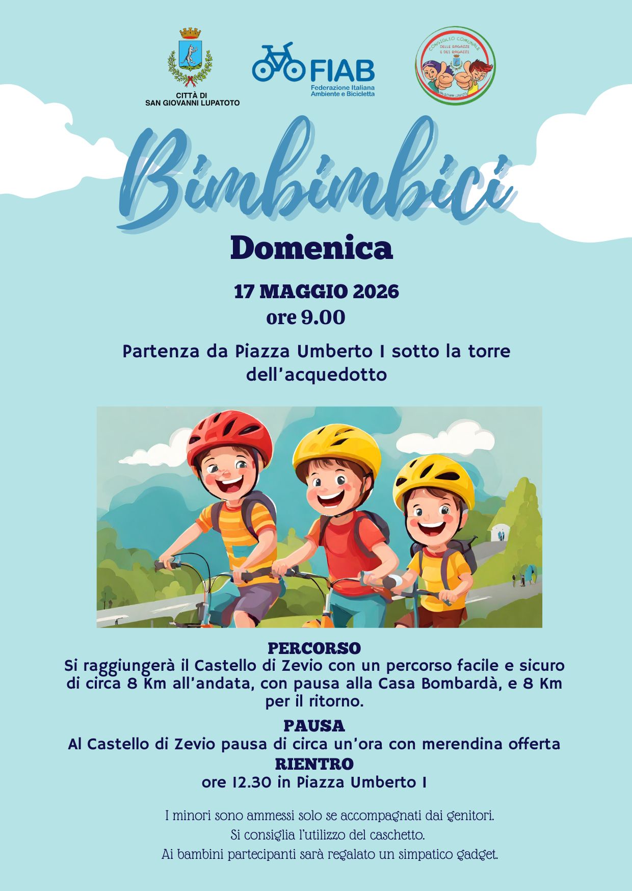 Domenica 17 maggio 2026 torna infatti “Bimbimbici”, la biciclettata organizzata in collaborazione con FIAB e con il coinvolgimento del Consiglio Comunale delle Ragazze e dei Ragazzi.